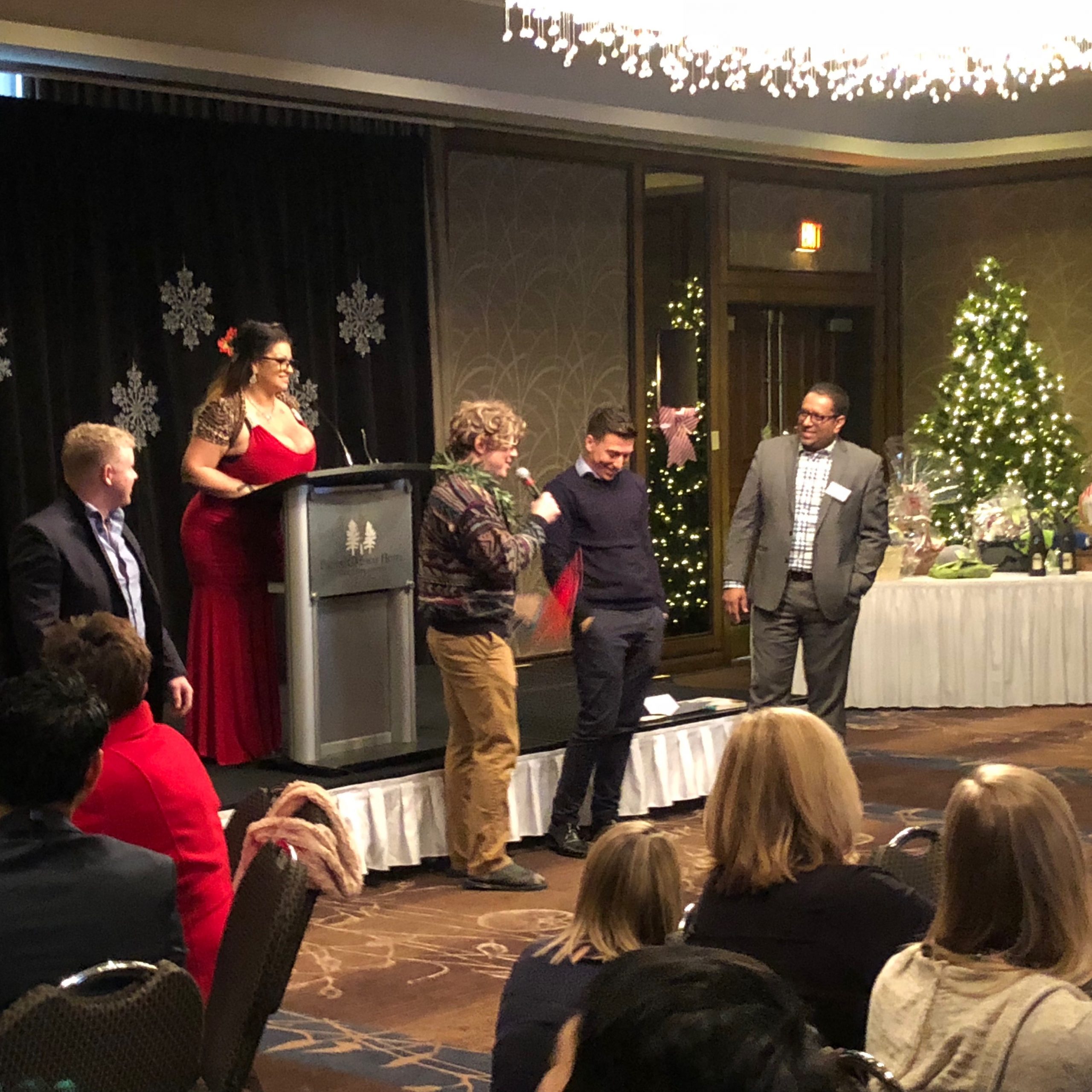 Despite a GPS that tried to take us to Manitou Beach…. by way of a washed out road THROUGH Manitou Lake… we arrived at the lovely spa and resort for the show, alas not enough time for a soak in the Hot Springs the place was known for. Melvin created quite a stir as the patrons of the hotel were treated to the sight of Elvis, in person, standing in the halls. The crowd was small, but lively. Kat grabbed some brave souls (including one guy, Alex) and put them through the paces of Showgirl dance moves. Elvis was able to get Alex’s dignity back and bestow on him the title of Showgirl/Possible Heir to the Rock and Roll Throne when the Elvis impersonation contest came up, alongside Roblis and Delvis.